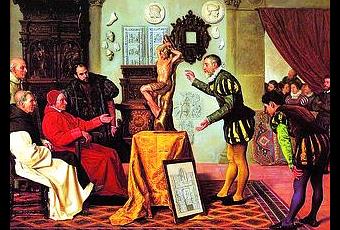 Imagen "Diario Palentino": El cardenal Tavera visitando a Alonso Berruguete. Pintura de Santos Jadraque que se encuentra en el Senado.