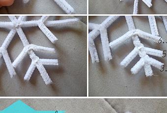 También podemos construir con limpiapipas decoraciones de Frozen inspiradas en el hielo podemos hacer estrellitas divertidas que podemos utilizar en cualquier sitio para decorar o colgar del techo a modo de guirnalda.