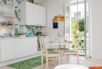 Today I’m showing you a small apartment located in Gothenburg, which has 49 square metres. The apartment has a distribution with a living room- kitchen-dining room, a bedroom, a bathroom and an entrance hall with a small office. It also has a terrace with enough space to house a table and two chairs in order to enjoy the outdoors. 49 square metres very well arranged, decorated in white, with light wood floors and small doses of colour that give joy to the home.