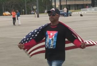 4.Este lunes fue detenido por agentes de seguridad durante la marcha por el 1 de mayo en la Plaza José Martí de La Habana, tras lanzarse al frente del desfile envuelto nuevamente en la insignia estadounidense.