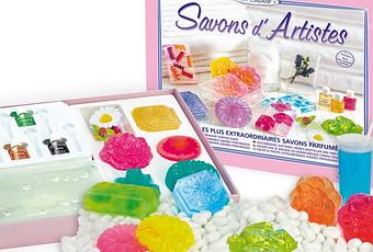 El juego te incluye gran cantidad de elementos como varios perfumes, flores, lentejuelas, moldes y por supuesto 450gr. de jabón de glicerina para realizar un montón de jabones personalizados de diferentes colores y formas.