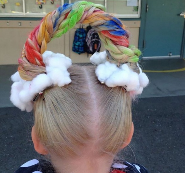 Si tu nena es amante de los colores y la tranquilidad que representa esa banda de luz, este peinado rainbow es la opción.
