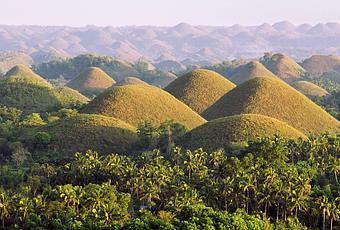 Pensaras que son comestibles pero no, las colinas de chocolate (Chocolate Hills) son un verdadero atractivo turístico de Filipinas, una zona extremadamente pintoresca y de gran atractivo visual: además de los “conos de chocolate”, la zona está salpicada de campos de arroz y grupos de viviendas típicas de bambú; son 1280 pequeñas colinas semejantes a conos esparcidos a los largo de 50 km cuadrados, que nos brindan una variedad de colores increíblemente naturales.