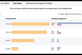 1. Rendimiento del video. Para comprender cómo influyen los videos en el alcance y la participación en general, ve a la pestaña “Publicaciones” de las estadísticas de la página y haz clic en Tipos de publicaciones.
