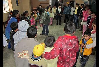 El pasado miércoles 21 de diciembre en compañía del P. Narciso Chinguel Flores CSsR nos dirigimos, a más media hora en automóvil, a encontrarnos con las familias de un pequeño y acogedor poblado serrano. Ellos habiendo coordinado previamente con la parroquia nos esperaban y estaban reunidos en escuelita de la zona, donde celebraran la fiesta de promoción de los alumnos que dejan la primaria. Alrededor de 40 niños y algunos de sus padres nos esperaban y muy cordialmente no s recibieron invitándonos un plato de comida, la que disfrutamos con mucho gusto. Entre lo programando para esta tarde empezamos con un momento de oración a cargo de nuestro sacerdote el P. Chicho, para continuar con la animación infantil ofrecida por los profesores. Mientras se animaba a los pequeños y sus padres, la profesora Inés y el profesor Víctor Hugo preparaban el chocolate, utilizando una artesanal cocina a leña, demostrando así el sus ganas de servir y ayudar a los demás. Todo quedó según lo que pensamos y comenzamos el reparto de la chocolatata.
