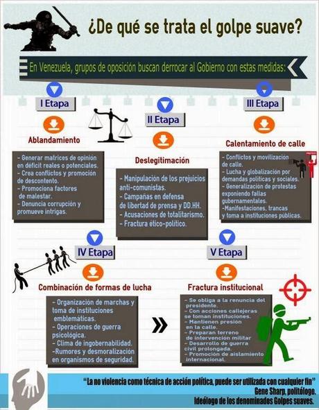 En noviembre de 2013, el presidente Nicolás Maduro alertó que sectores de la oposición, con financiamiento de Estados Unidos y apoyo de la elite empresarial y la Agencia Central de Inteligencia norteamericanas, planeaban un golpe blando en su país, estrategia que desde el pasado 12 de febrero se implementa activamente en Venezuela.