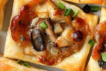 1. Tartaletas con cebolla caramelizada, setas, manzana y gruyere