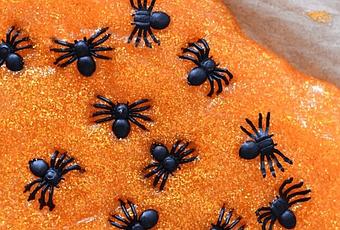 En el blog Fork and beans tienen estas ideas para decorar slime para Halloween con insectos de plástico, como arañas, moscas u hormigas.