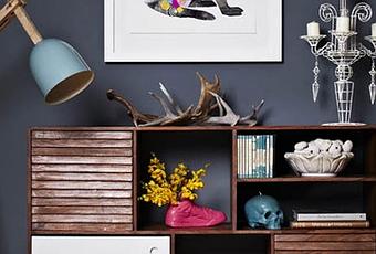 Dar personalidad a un mueble:Si tienes un mueble de los que no te quieres deshacer por su valor sentimental,pero te parece soso o anticuado, créale un espacio con encanto a su alrededor.En este caso con la pared oscura de potencia el calor de la madera y le da elegancia.La lámina con fondo blanco ilumina el conjunto destaca la puerta corredera blanca.Rodéalo de mas maderas.Y por último coloca piezas de color que desplacen la atención y quiten sobriedad al conjunto.