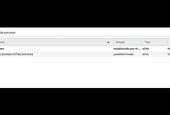 - Escrive browser.ctrlTab.previews en la barra de búsqueda de la nueva página y, a continuación, haz doble clic para cambiar su valor a true.