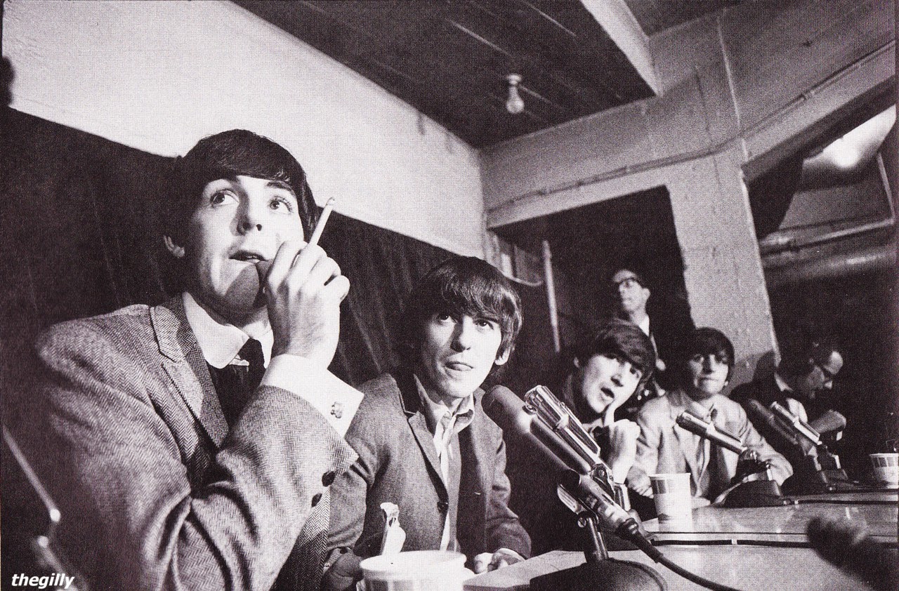 PAUL: "Él es genial!" GEORGE: "De hecho, lo conocimos en un club nocturno en Londres, en realidad, aunque creo que no se dio cuenta." DEREK TAYLOR: "¿Podemos callarnos un poco? ¿Podemos callarnos en la parte de atrás?"