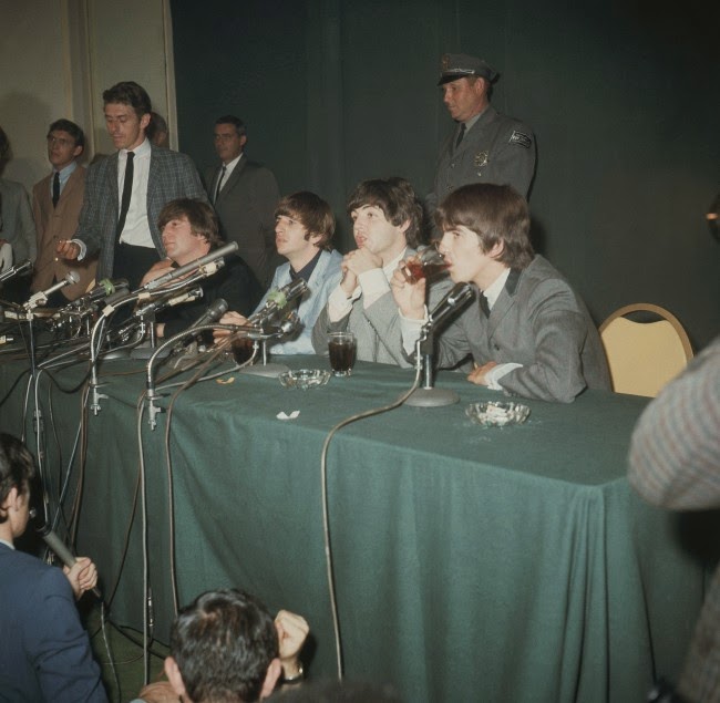 P: "Algunos de sus fans más animadas afuera dicen que se van a cambiar a Los Rolling Stones, porque dicen que Los Beatles no de saludan desde de la ventana. Me gustaría su comentario." JOHN: "Bueno, si nos van a dejar por eso, pueden irse de todos modos, sabes." (Risas y aplausos) PAUL: "No, se nos dijo, tan pronto como llegamos aquí ayer por la noche, la policía: no miren por las ventanas y no saluden. Si lo hacíamos, entonces teníamos al jefe de la policía frente a nosotros diciendo: (acento americano) 'Bueno, hemos terminado, chicos!’, se va y no nos resguardarían. Así que no podemos hacer nada."