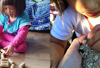 Los materiales naturales son maravillosos porque no son estructurados, pero a la vez tienen un orden lógico perfecto en su forma que sólo la naturaleza sabe crear. Así en su mayoría, estos materiales son sensibles al tacto, generando percepciones sensoriales verdaderas. Además de su forma y textura, su simpleza y sencillez pueden representar un desafío en la mente de los niños y niñas. Algunos materiales naturales son: