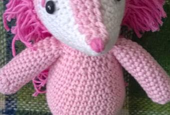 He tejido este erizo, Espinete, porque el color fucsia de sus púas me encanta. Ya sabemos todos que los tintes afectan a la textura de los hilos, no sé cómo conseguirán este color fucsia, el resultado es muy muy suave. Es Marbella Cotton de www.ovillos.com