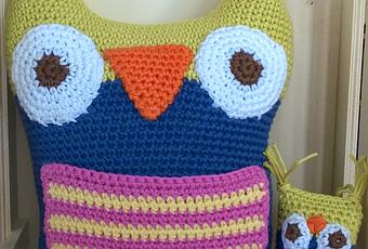 Tenía idea de tejer un búho multicolor, una de las premisas era que tuviera un bolsillo para guardar secretos. Como los secretos no siempre se pueden guardar, he tejido un pequeño búho para poder guardarlo en el bolsillo.