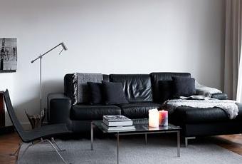 A lo mejor me equivoco, pero me da la sensación de que en este pequeño apartamento vive un hombre y además sólo. ¿Que por qué lo pienso? Pues básicamente por la gama cromática elegida para la decoración, negros, grises y blancos y los materiales, metal, cuero y madera. Creo que es sobretodo por los accesorios, ninguno tiene un color brillante o estampado que destaque, o sea de un color más ‘típico femenino’ (fucsia, turquesa…). No estoy diciendo que cada sexo tenga sus colores y que si los utiliza es otro sea raro o no correcto, nada más lejos de lo que pienso, pero la experiencia me dice, que en general, los hombres eligen tonos más neutrales y menos estampados en decoración, que las mujeres. ¿Qué pensáis, hay decoración típicamente femenina o masculina? ¿Quién creéis que vive en este piso y hombre o una mujer? Por cierto, ya estoy en Dinamarca, fresquito, fresquito :))