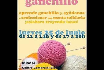 Una amiga, Maria Isasi, organiza para este jueves 25 de Junio, al lado de su tienda en el centro comercial Bidarte (Bilbao) una actividad lanera. El objetivo una manta de cuadritos para donar.