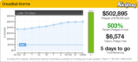 Quedan menos de 5 días de campaña de mecenazgo de Dreadball Xtreme en Kickstarter y tras los traqueteos de ayer(Leves traqueteos) parece ser que ha retomado la senda ascendente.Ahora mismo están recaudados 503382 dolares con 2178 mecenas que aportan fondos al proyecto.Por lo que se pasa de los 500000 y se desbloquea la 5ª temporada del juego,quedando por desbloquear la recompensar de los 525000(Los equipos de Koris y Hobgoblins de la 6ª Temporada).No han puesto mas metas,así que parece ser que se quedaran a ver si llegan a esa cifra.Y visto lo visto,tienen posibilidades mas que razonables de hacerlo si siguen manteniendo este ritmo de aportes.Los equipos y las figuras especiales de animadoras,los dos.Y como muestra un dato claro.El gráfico que pongo abajo de estas lineas lo colgó en grupo de FB de Dreadball Fanatics Geoff Burbidge hace escasos 20 minutos..y se ha quedado obsoleto.De hecho al final de la entrada,que me va llevar poco escribirla pondré la cifra recaudada en ese mismo momento a ver cuanta es la diferencia.