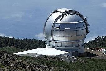 En la imagen el Telescopio Grantecan, de 10,4 metros de diámetro. Este telescopio asistido por su sistema de óptica adaptativa es capaz de superar al mismísimo HubbleAunque el principio es el mismo (deformar un espejo mediante actuadores controlados por computadora), la diferencia entre óptica activa y óptica adaptativa radica en la naturaleza de las deformaciones. La óptica activa actúa en el espejo primario, corrigiendo las deformaciones que resultan de la mecánica del telescopio aun ritmo de tan solo una vez por segundo. Sin embargo, la óptica adaptativa corrige los efectos de la atmósfera un espejo secundario o terciario, a razón de 100 veces por segundo. Sin la óptica adaptativa los espejos de los grandes telescopios conseguirían el mismo poder de resolución que un telescopio de aficionado.