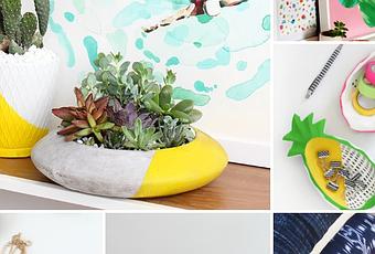 Y si hablamos de frutas que nos recuerden al verano, la piña seguramente será una de las principales, no es la primera vez que os muestro decoraciones y diy con ellas, como estos faroles en forma de piña o este bolso con dibujos de piña. En esta ocasión volvemos recurrir de nuevo a Ispy diy para ver el paso a paso que se ha seguido para realizar estas coloridas bandejas en forma de piña