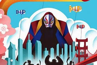 "6 héroes": colorista cartel para la new york comic-con por el ilustrador kaz oomori