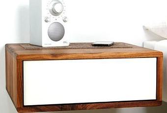 Una mesita de noche sobre la pared es perfecta para una habitación pequeña. El espacio abierto bajo la mesita permite agrandar visualmente el espacio, y también puedes utilizarlo para guardar zapatos y libros.