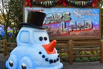 2. Los personajes de “Cars” en Radiator Springs lucen decoración festiva que refleja sus personalidades. El árbol de conos de Sally en el Cozy Cone Motel mide casi tres metros de altura.