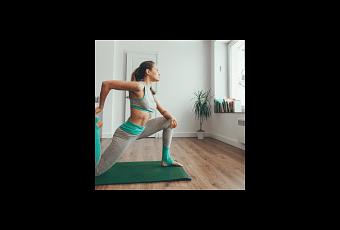 Estiramiento 2: coloca una pierna hacia delante, y deja la otra hacia atrás. Flexiona la rodilla de la pierna de delante, sin encorvar la zona lumbar (zona baja de la espalda), al exhalar aumenta la flexión y al inhalar mantenla. Después, deshaz el estiramiento y repite con la otra pierna hacia delante.