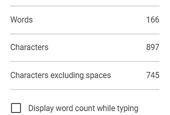 Es importante tener en cuenta que la herramienta nativa de conteo de palabras de Google Doc no cuenta palabras en encabezados, pies de página o notas al pie.
