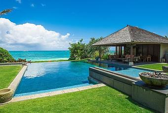 Jardines tropicales rodean su villa, y majestuosas palmeras se elevan desde el verde césped. Lanza mariscos frescos a la parrilla, con el océano sobre tu hombro, antes de saborearlo alrededor de una mesa al aire libre con capacidad para catorce. La casa está envuelta por terrazas y un lanai, cada uno con muebles de ratán de diseño.