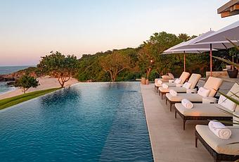 Sus vacaciones en Vatulé incluyen servicio de cocina en el desayuno, servicio de chef en la cena y acceso al complejo St. Regis Punta Mita. Pero la villa está lo suficientemente bien equipada como para sentirse como su propio complejo privado, con una hermosa piscina infinita climatizada, bañera de hidromasaje, una sala de estar y comedor a la sombra junto a la piscina, una cocina al aire libre con barbacoa e incluso un gran campo de juego para fútbol o bochas.