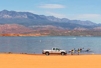 Mientras te adentras en sus cálidas aguas, puedes saludarte con los ingenieros que crearon este parque fluvial en la zona desértica. cerca de St. George. Maravilloso playas con accesos poco profundos bordean un banda del estanque, y es aquí donde encontrará mesas de picnic, parrillas para grill y un muelle. La concesión cercana alquila tablas de remo, kayaks y motos de agua. Incluso venden bocadillos, bebidas frías y hielo para su hielera.