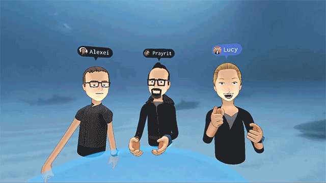 Así que puedes conversar con una persona a través de un avatar que es parecido físicamente y emula a la perfección el movimiento de la persona. En este enlace puede ver Lucy y Michael estaban allí con Mark, frente a frente, visualizandose, compartiendo el mismo espacio gracias al VR (Virtual Reality). Míralo haciendo clic aquí.