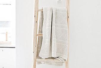 Si no quieres ni hablar de los míticos colgadores de toalla de pared o con pié, utilizar una escalera como substituto puede ser el recurso perfecto. Si bien de pié nos sirve como colgador simple para el uso frecuente, otra con repisa será genial para tener todas las toallas organizadas y a la vista.