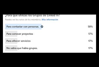 A raíz de una encuesta que realicé en LinkedIn sobre la utilidad que los usuarios le dan a los grupos en esta conocida red social, se percibe que el 60% de las personas que han respondido, los utilizan para contactar con personas.