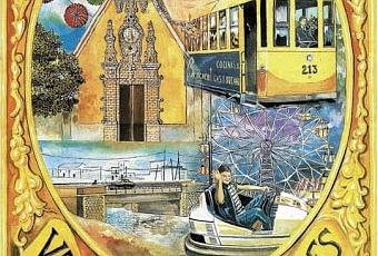 Bonito cartel anunciador, ¿verdad?, pero hay detalles que nos llaman mucho la atención, como el desaparecido puente que cruzaba sobre el Tamarguillo para llegar al Cerro, "el puente de la frontera" le decíamos, el tranvía que nos llevaba al barrio o una fachada de lo que parece ser una iglesia...