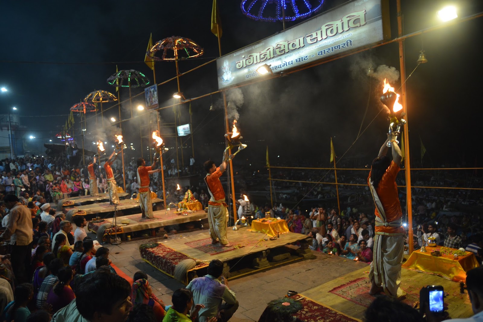 Todos los días a las 18:30 en el ghat principal se realiza la ceremonia del fuego.