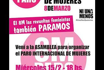 La Colectiva Feminista La Revuelta, convoca a organizaciones sociales, feministas, políticas, estudiantiles, de derechos humanos, de movimientos LGTTBI, barriales, cooperativas, medios de prensa alternativos, organizaciones mapuce, a activistas feministas a una Asamblea Abierta para organizar el Paro Internacional de Mujeres del día 8 de marzo.