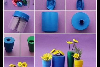 @artesanatocursooficialUna de las mejores ideas para hacer un centro de mesa super rápido y fácil, utiliza los globos de colores y viste los frascos pequeños, medianos y botellas. Te imaginas solo colocando agua y unas flores con un poco de follaje verde