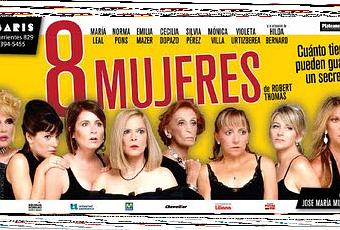8 Mujeres es una obra maravillosa trabajada desde la tragedia y los secretos que pueden –o no- ser disparadores de situaciones muy complejas. La trama ocurre en los años 50, en una mansión de Francia, donde su dueño es asesinado –aparentemente- por alguna de estas 8 mujeres que rodean su vida. Enredos entre hijas, esposa y amante, ama de llave, hermanos y empleados. Nadie sabe quien miente. Nadie sabe cual es la verdad en una casa donde nadie parece tenerla. ¿Puede un ser humano vivir entre tanta mentira? Muscari dirige, y permite actuar, a 8 maravillosas actrices que transitan por la comedia, el drama y la tragedia con absoluta naturalidad. Una obra de texto, atravesada por el humor, de una manera fina, sin caer en palabreríos grotescos; con una música que logra recrear los climas e hilarlos para conducir al espectador por un abanico de sensaciones perfectamente elaboradas. Se destacan las actuaciones de Mónica Villa, Hilda Bernard, Norma Pons, María Leal y Emilia Mazer.
