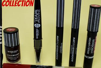 De izquierda a derecha, el tinte de mejillas y labios; los dos Absolute Lasting Liquid Lisptick (arriba recién dado y abajo pasado un pañuelo para quitar excedente que se ve que aguantan); el Velvet Lipstick con un tono muy similar al "gloss"; los dos Mat Stick Eyeshadow Waterproof con una sola pasada y por último el 3 in 1 Kajal.