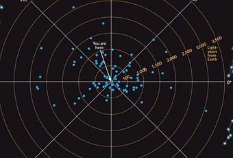 Posición de las 82 estrellas que podrían ver un tránsito de nuestro mundo por delante del Sol