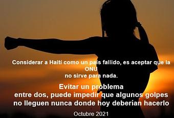 Naciones Unidas se contradice y su actitud es de un negativismo absoluto, al no realizar avistamiento o justificación alguna para iniciar un proceso de misericordia e intermediación contra el horror que enciende a un Haití siempre en llamas, al que ya poco le queda por arder para mantenerse y calentar un caldo de esperanza que inspire la cordura, provocando ese terror infame que nadie se merece en este siglo XXI, donde unos poderosos "terratenientes" con vocación de falsos quáqueros siderales, quieren alcanzar el cielo y las estrellas, y otros se estrellan contra los muros de la incomprensión, y ese hambre que no cesa y no es invisible, que irradia el pillaje y la impunidad que algunas instituciones con su inacción mantienen.
