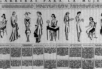 Asi que este año os traigo otro documento bastante revelador, no he conseguido una foto más ampliada de este fragmento sacado una vez más de la Sección Femenina, en el que se muestran o "sugieren" las Carreras para la Mujer: maestra, secretaría, niñera, enfermera, cartera, zurcidora... Y aunque reconozco que la Sección Femenina es de tendencia bastante machista, el indice de analfabetismo de la mujer era bastante alto y entre ostras cosas también les enseñaban a leer y a escribir, lo que también se agradece. Al Cesar lo que es del Cesar.