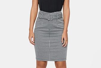 Yo soy muy fan de las faldas midi, creo que quedan super bien y en primavera se van a seguir llevando. Esta falda lápiz de cuadros en blanco y negro lo mismo sirve para la oficina que para ir de concierto con una camiseta de tu grupo favorito.