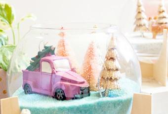 Además de los pequeños árboles podemos introducir dentro del terrario de Navidad pequeñas figuritas. Las más típicas por supuesto son los pequeños renos. Pero puedes añadir además casitas, o incluso como en una de las inspiraciones una caravana.........¿Original verdad?Así que ya sabéis directos al cajón de juguetes de vuestros hijos ¡Seguro que encontráis alguna pequeña figurita para decorar el terrario de Navidad!
