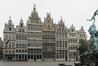 El Grote Markt, con su ayuntamiento y casas de gremios, es el corazón del casco antiguo. En el centro se encuentra la ornamentada Fuente Brabo erigida en 1887. Representa al soldado romano Silvius Brabo arrojando la mano cortada del gigante Antígono en el Escalda. El Ayuntamiento domina el lado oeste de la plaza. En el interior, las habitaciones están decoradas con cuadros del siglo XIX que ilustran la historia de Amberes.