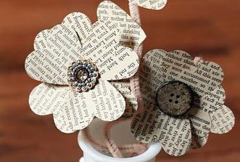 Podemos decorar con flores recicladas de papel muchísimos espacios a mí me gusta especialmente hacer centros de mesa porque queda muy elegante y además como suena un tono muy neutro queda muy disimulado podemos hacer unas cuantas flores y colocarlas en un jarrón y colocarlo persiguiendo una mesa en una cena me gusta especialmente poder envejecer un poquito las hojas utilizar libros que hayan sido un poco deteriorados y quemarle las puntas de las puntas de las flores para darle un toque más romántico. ¿ y a tí? ¿Cuál es tu flor de papel de libro favorita?