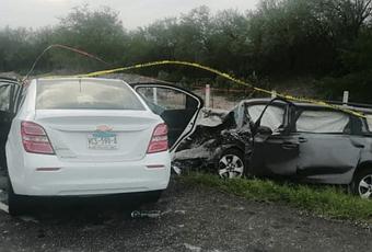 SLP.-En un choque vial registrado en el kilómetro 42 de la carretera Rioverde, han fallecido 9 personas a bordo de dos vehículos.
