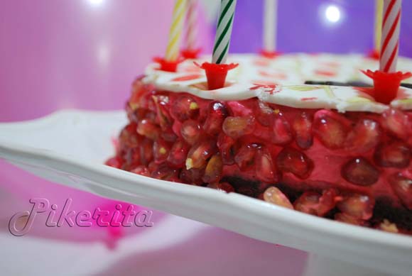 Tarta de granada que podéis encontrar en el blog La cocina de Pikerita, además viene ya con sus velas incorporadas, qué os parece?